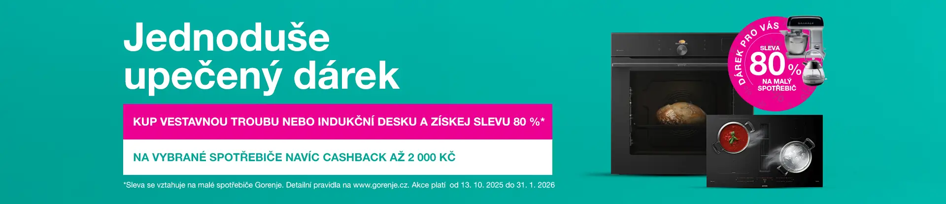 Nyní navíc s jednoduše neodolatelnou akcí – při nákupu trouby nebo varné desky sleva 80 % na malý spotřebič a cashback na vybrané modely! Akce platí od 13. 10. do 31. 1. 2026.