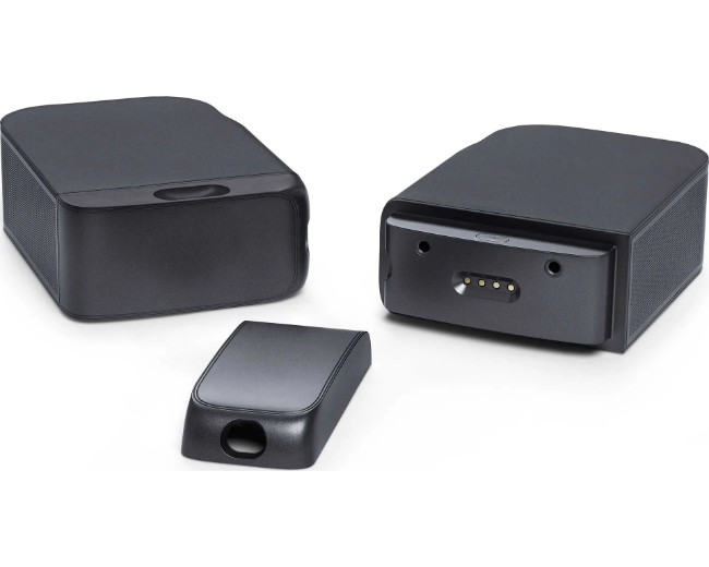 Zažijte skutečný prostorový zvuk bez problémů s dalšími kabely a napájením. Jednoduše umístěte dva odnímatelné bateriově napájené prostorové reproduktory za sebe a nechte se unést úžasným zvukem.