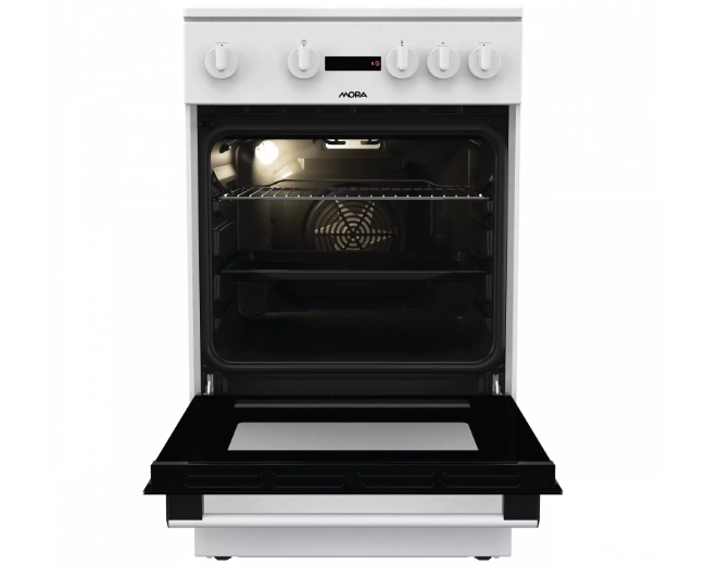 Elektrický sporák Mora C 2231 AW v bílém provedení se sklokeramickou deskou se 3 zónami a multifunkční troubou překvapí úspornou energetickou třídou A a objemem trouby 68 l. Kromě klasického pečení má trouba i speciální program na čištění trouby ECO CLEAN, který Vám zajistí bez velké námahy vyčištění vnitřku trouby a je maximálně ohleduplný k životnímu prostředí a Vašim nákladům na čistící prostředky. Uvnitř se nachází praktické osvětlení, takže budete mít po celou dobu pečení dokonalý přehled o připravovaném pokrmu. Ve spodní části sporáku je praktický úložný prostor, do kterého snadno uložíte příslušenství v podobě roštu a mělkého plechu. Tento model je vhodný na chaty či kamkoli, kde není dostatečné elektrické napětí a je třeba mít sporák s omezeným chodem