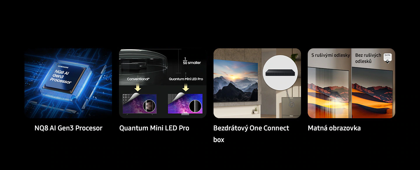 Objev ultrajemný kontrast v každé scéně s diodami Quantum Mini LED, které přesně ovládá technologie Quantum Matrix Slim. Tento inovativní systém podsvícení spolu s diodami Quantum Mini LED poskytuje ostrý a přesný kontrast