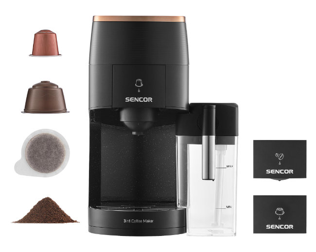 Máte rádi Cappuccino nebo Latté? Elegantní multikapslový kávovar 3v1 od Sencoru vám ho dopřeje i s poctivě ušlehanou dávkou pěny. Disponuje napěňovačem včetně 280ml nádržky na mléko. Díky tomu vám automaticky našlehá krásně napěněné mléko.