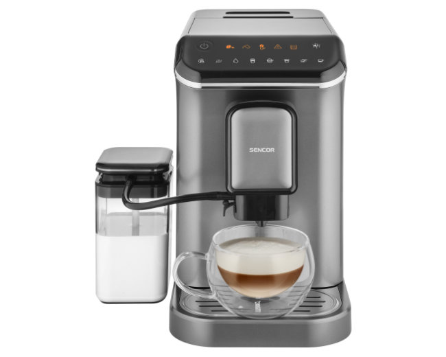 Zpříjemněte si den s šálkem dobré kávy. S elegantním automatickým kávovarem Sencor SES 8000BK vykouzlíte pohodlně u vás doma kávu jako od profesionála. Přípravu zvládne zcela automaticky od namletí kávových zrn pro tu nejlepší chuť a aroma až po přípravu pěny v mléčném automatickém systému. Během chvíle vám přípraví mléčnou pěnu jako od profesionála a hravě si poradí s přípravou caffé latte i macchiata. Stačí si jen zvolit druh kávy na LED podsvíceném dotykovém displeji. Disponuje výkonným tlakovým čerpadlem o síle 20 barů, topným systémem Thermoblock a integrovaným mlýnkem s nerezovými mlecími kameny. S touto symfonií moderních technologií dosáhne automatický kávovar perfektních výsledků.
