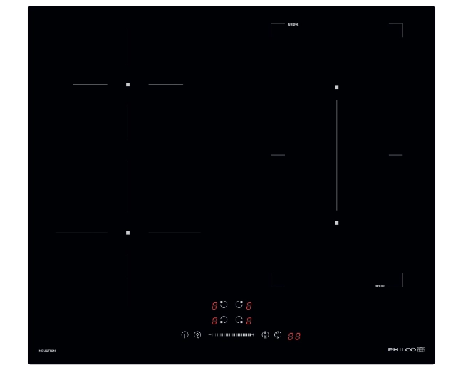 Indukční varná deska Philco nabízí varné zóny s funkcí Booster pro rychlejší zahřátí.