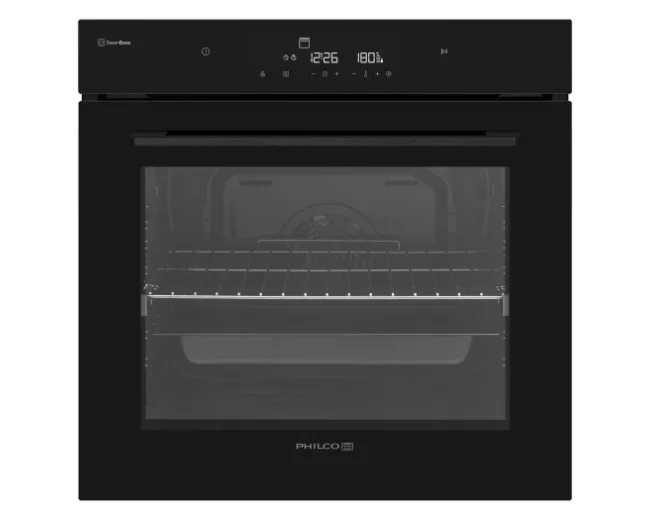 Multifunkční horkovzdušná vestavná trouba Philco POB 759 TSB z kolekce Cooking Black. Elegantní černý design, moderní technologie a funkce páry dělají z této trouby superhrdinu každé kuchyně.