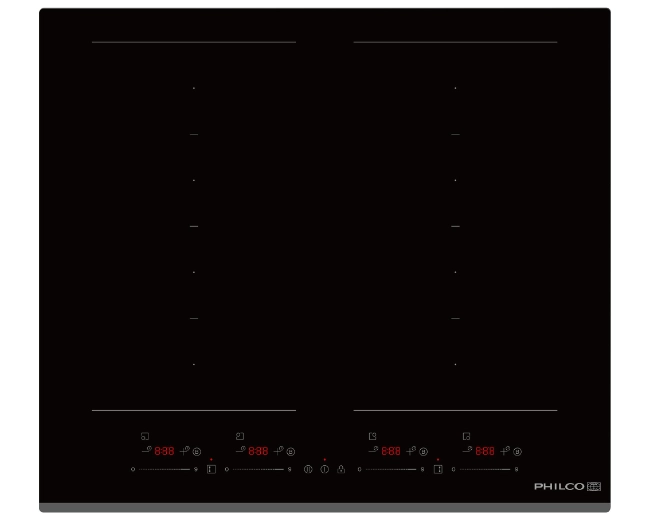 Indukční varná deska Philco nabízí varné zóny s funkcí Booster pro rychlejší zahřátí.